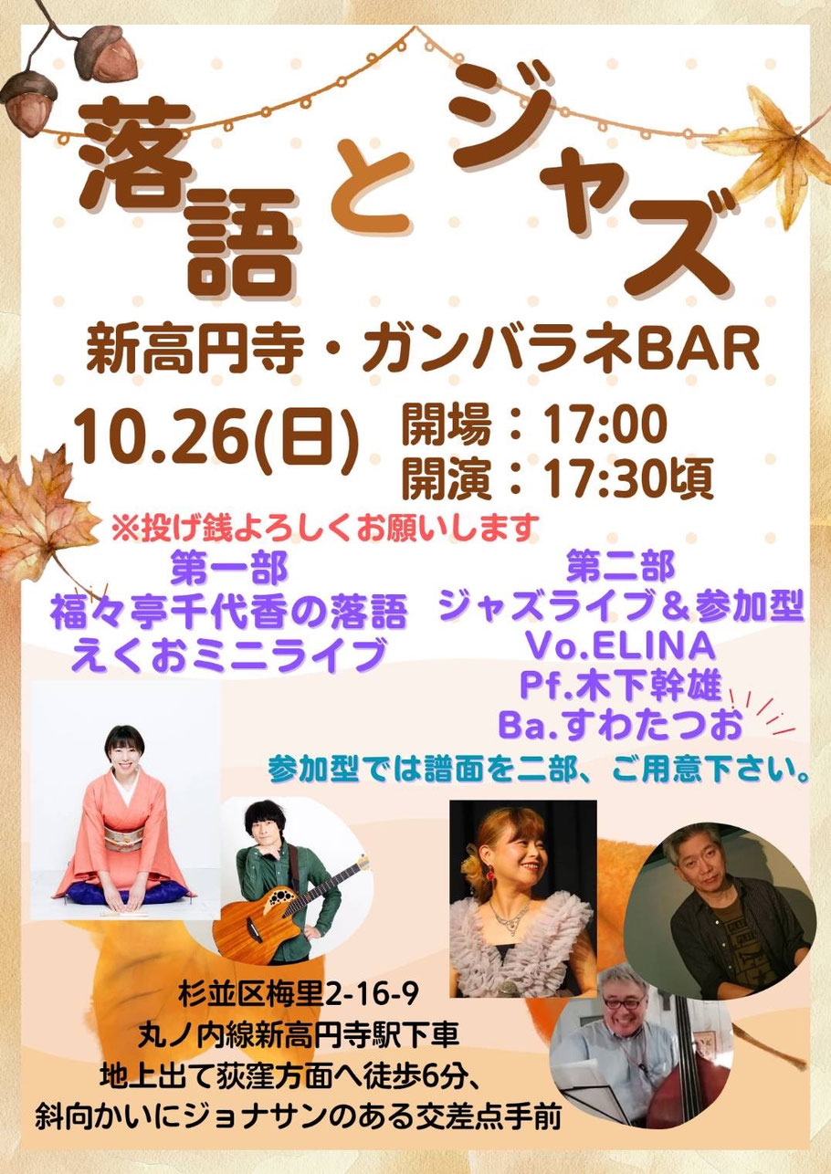 入店チャージ¥1,000+1drink(¥500) ※出演者・お客様共